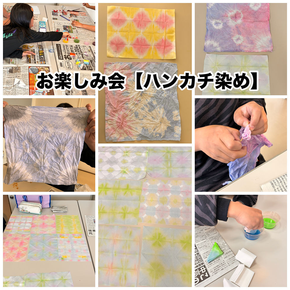 折り染めで遊んだ後、コットンのハンカチを専用の染料で染めました。